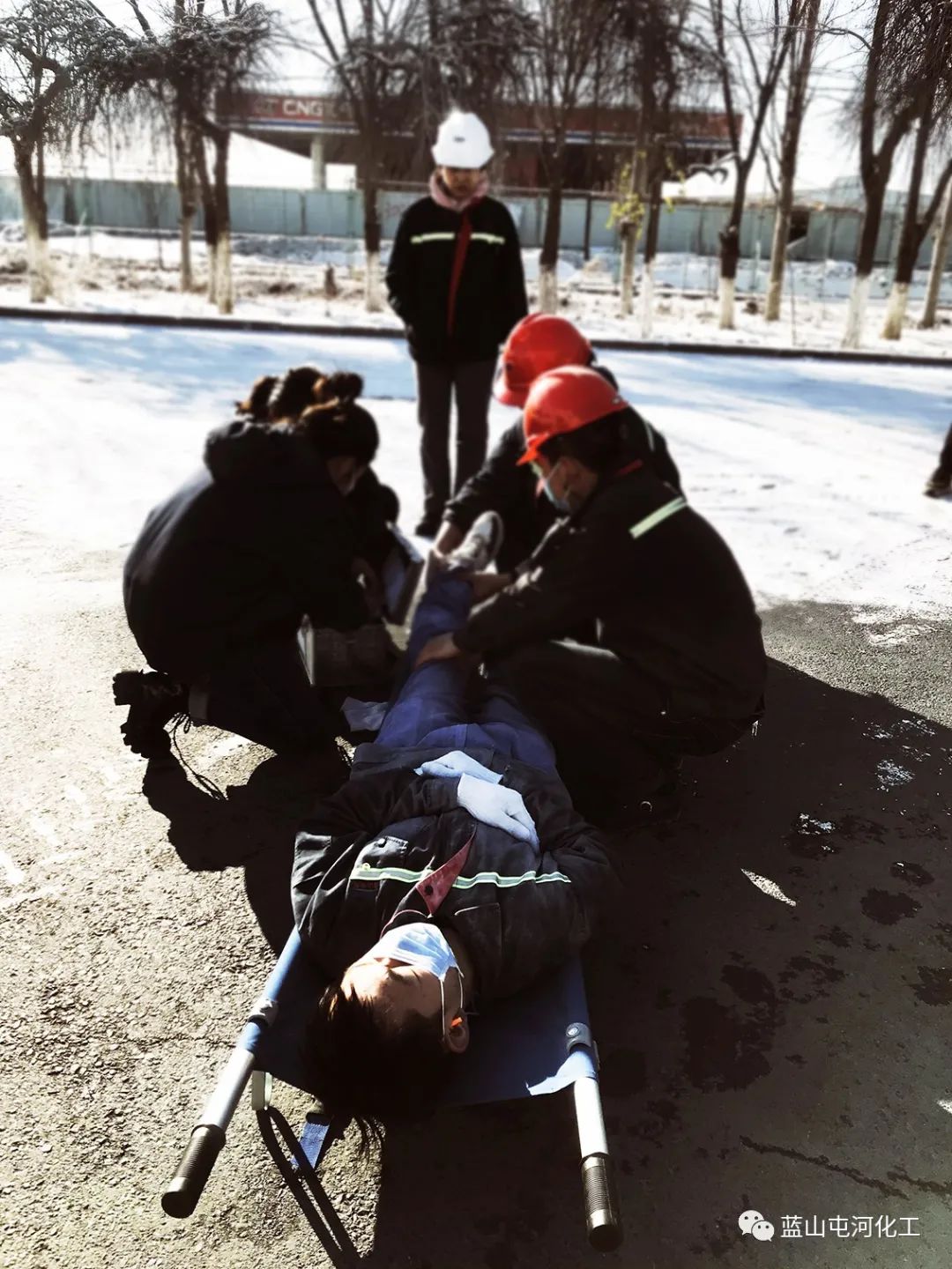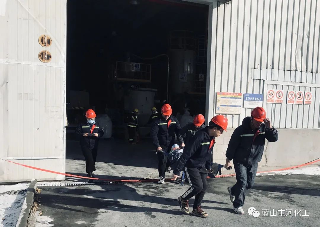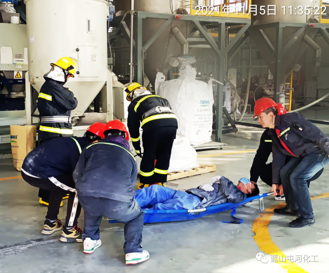 應(yīng)急救援組穿戴好防護用品,檢查滅火器完整情況后,對現(xiàn)場火災(zāi)警戒觀察滅火,利用混料車間消防栓對起火區(qū)域噴淋,并對有可能受火災(zāi)事件影響擴大的區(qū)域持續(xù)噴淋覆蓋及降溫;警戒醫(yī)療組設(shè)置警戒線,進行通行管制,組織人員疏散到指定區(qū)域,對受傷人員實施急救;后勤保障組聯(lián)系車輛送受傷人員前往醫(yī)院;各屬地負(fù)責(zé)人清點班組人員,確認(rèn)傷害狀態(tài)......隨著演練的進行,一條條應(yīng)急預(yù)案緊張有序的落實到位,現(xiàn)場指揮得當(dāng),大家協(xié)同配合,圓滿完成各項演練流程,達到預(yù)期效果。